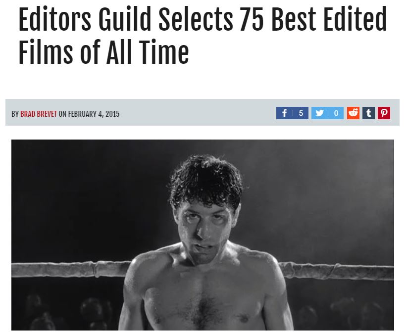 Article describing the 75 best edited films. Raging Bull is ranked number 1.